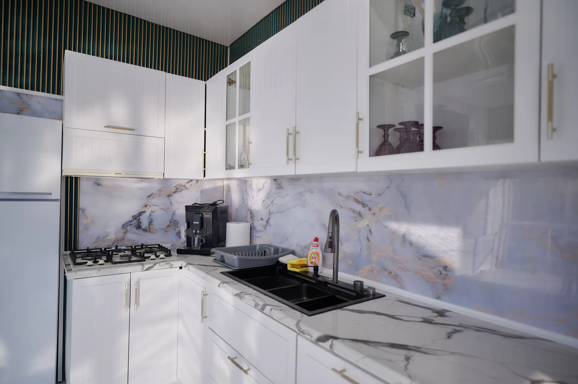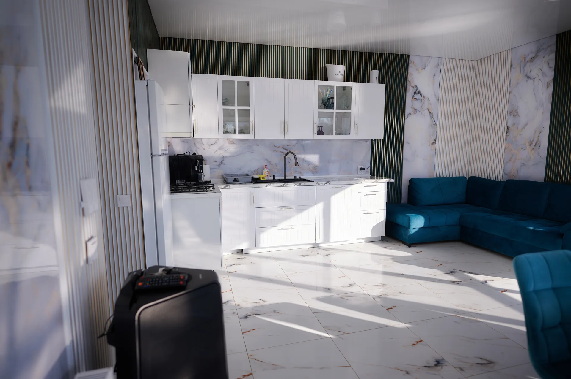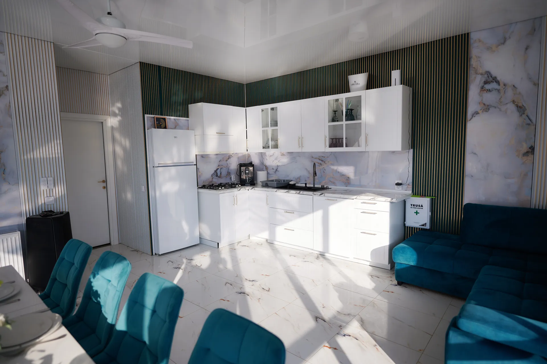 Aveți bucătărie proprie pentru autonomie totală și un living generos unde toată lumea are loc la masă. Aici se face strategia dimineața și se sărbătorește captura seara, totul sub același acoperiș.
